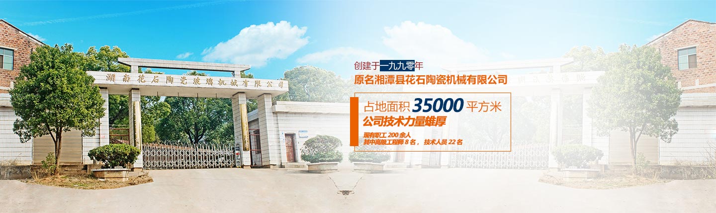湖南花石陶瓷玻璃機械有限公司,創建于一九九零年,原名湘潭縣花石陶瓷機械有限公司,占地面積35000平方米,公司技術力量雄厚,現有職工200余人,其中高級工程師8名,技術人員22名,擁有各類先進加工及檢測設備,具有豐富的生產管理經驗,是陶瓷機械及玻璃深加工機械的專業制造商。